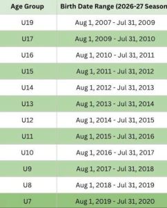 U7 & U8 Futures - Thursday April 30 & Monday May 4 from 6-7:30pm